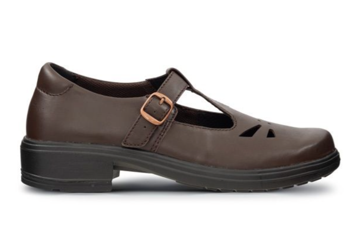 Eve 3 is our T-bar style brown leather school shoe for girls, designed to withstand any surface in the schoolyard or classroom.